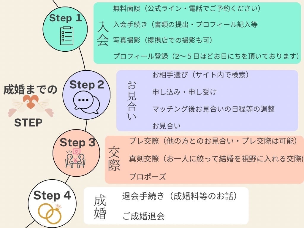 数々のお客様と関わってきた結婚相談所として、お客様の笑顔のために尽力してまいりますので、結婚についてのお悩みがありましたら遠慮なくご相談ください。